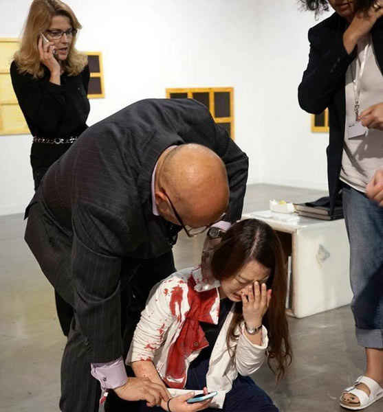 نکته قابل توجه این است که گروهی از حاضرین در محل حادثه گمان کرده اند پرفورمانسی در حال وقوع است و گروهی دیگر بعد از اینکه پلیس محل حادثه را با کشیدن نوارهای مخصوص، مسدود میکند، آنچه می بینند را بخشی از یک اینستالیشن تلقی میکنند. دامنه گسترده اجرای پروفومسهایی همچون اجراهای مارینا آبراموویچ و دیگران، به نوعی باعث شده بازدیدکنندگان به دیدن خون و یا شنیدن صدای فریاد، در یک محیط رسمی برگزاری هنر معاصر به دیده شک بنگرند که آیا باز هم توسط یک اثر عجیب معاصر غافلگیر شده اند یا خیر. آنچه در حاشیه این اتفاق میتواند تامل بر انگیز باشد ایناست که یک اتفاق فارغ از ماهیت خود به فراخور بستری که در آن اتفاق افتاده است معنای متفاوتی در ذهن مخاطب ایجاد می کند، همچون اثر هنری معاصر که امروز در بستر و زمینه ارائه خود معنا مییابد. هنرمندانی پرفورمنسی کهبه جهت جلب توجه مخاطب در محل گالری حوادثی را هرچند واقعی و به قیمت آسیب دیدن خود طراحی و اجرا کرده اند به نوعی، شیوه واکنش مخاطب را به محل وقوع اتفاق منوط کرده اند.